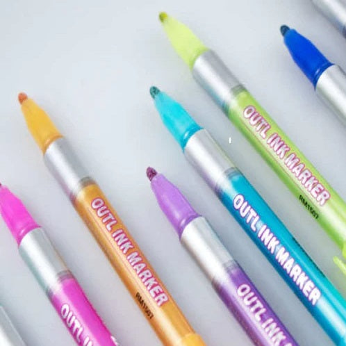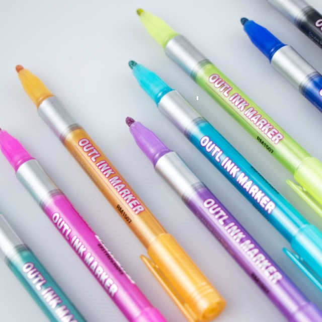 SET 24 PLUMONES - DOBLE CONTORNO METALICO