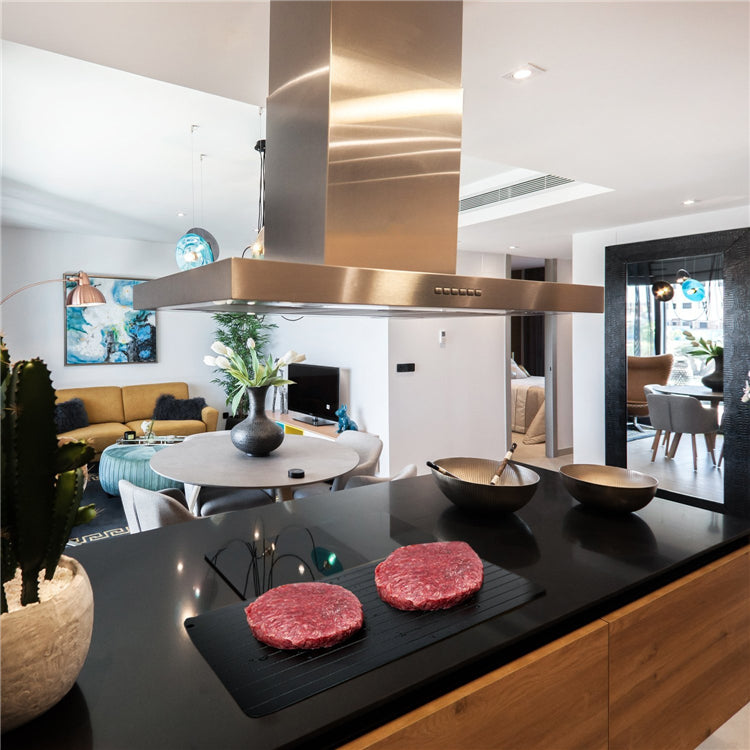 Hecho de una aleación de aluminio especial con una conductividad térmica de 20,000 veces la de los metales comunes, nuestra bandeja logra un intercambio de calor a alta velocidad, lo que resulta en el descongelamiento natural más rápido.